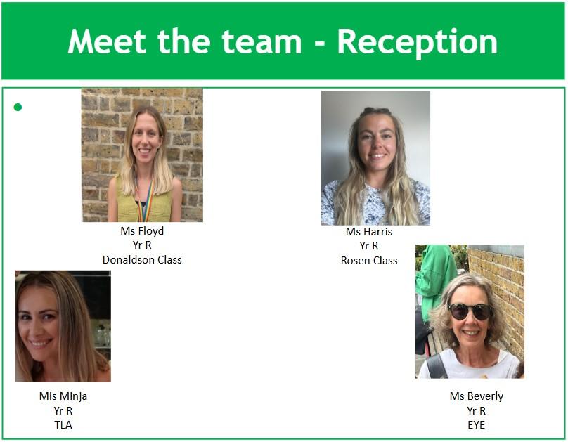 We are so excited to be teaching in Reception and to be sharing our wonderful playground with Reception and Nursery pupils. We believe this is such an important year for your child as it is right at the start of their learning journey in Primary School. Our aim is to ensure that all pupils feel happy, supported and challenged.