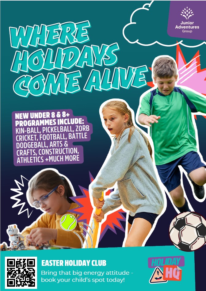 This Easter, Holiday HQ returns to our school — delivered by Junior Adventures Group (JAG), the school’s trusted wraparound care provider, with dedicated leaders for each age group.