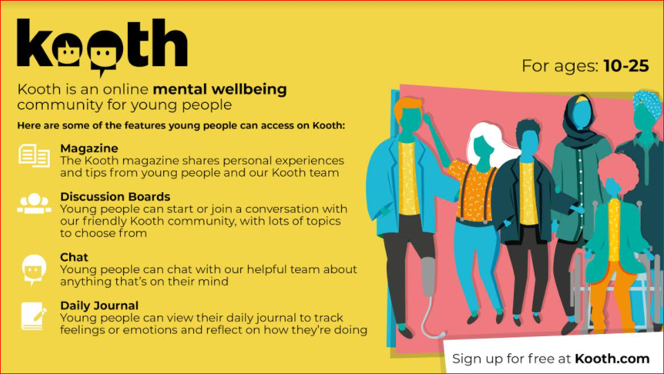 Kooth is an online mental well-being community for adults from 18-25.